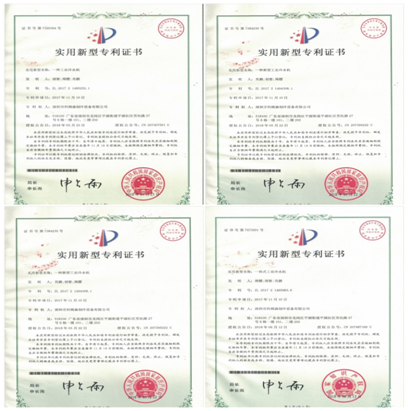 近日,我公司申请的国家知识产权局四项实用新型专利证书已经审核通过,并取得以下专利证书。